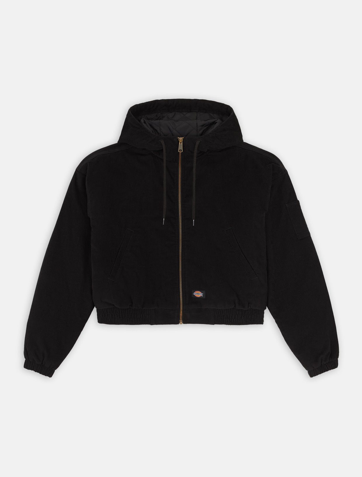 Hold dig varm, når du går ud i det fri, i denne tidløse jakke til koldt vejr. Vores jakke med hætte er lavet af blødt fløjl med behageligt quilt. Jakken har en almindelig pasform, en justerbar hætte med snøre, paspolerede sidelommer og en stilfuld silhuet i taljelængde. Den har stretch forneden og ved kanten for en mere elegant pasform.