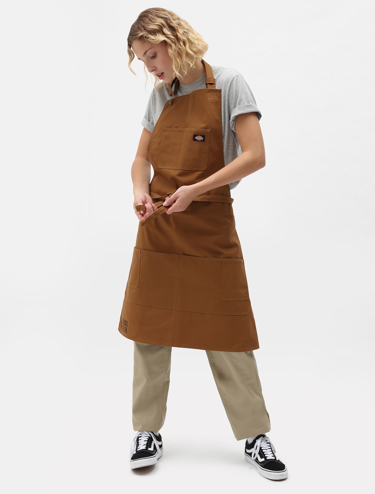 The Bib Apron is part of our classic Icon range, styled with our stand-out “put Dickies on the job” script. Our classic workwear apron features two pockets with tool inserts. Crafted from heavyweight cotton canvas, this apron features a brass rivet button, adjustable neck loop and tie back fastening for your comfort and convenience.
