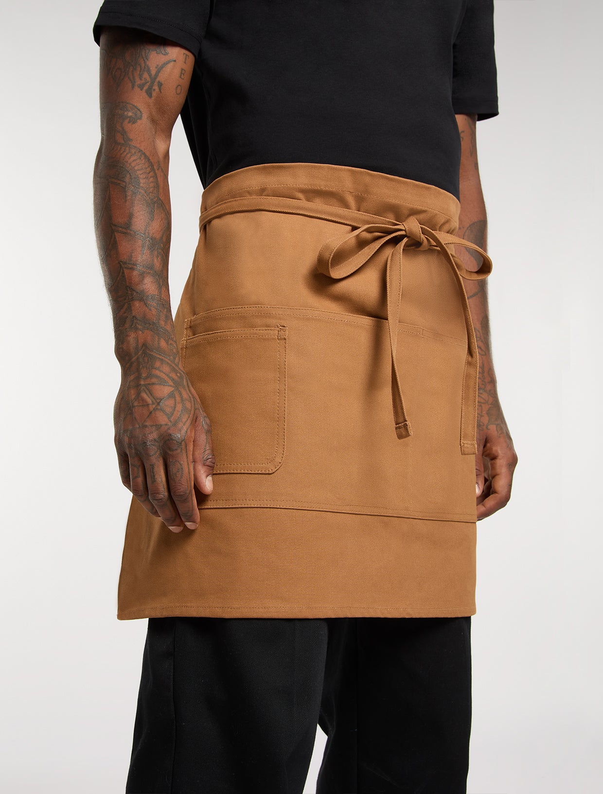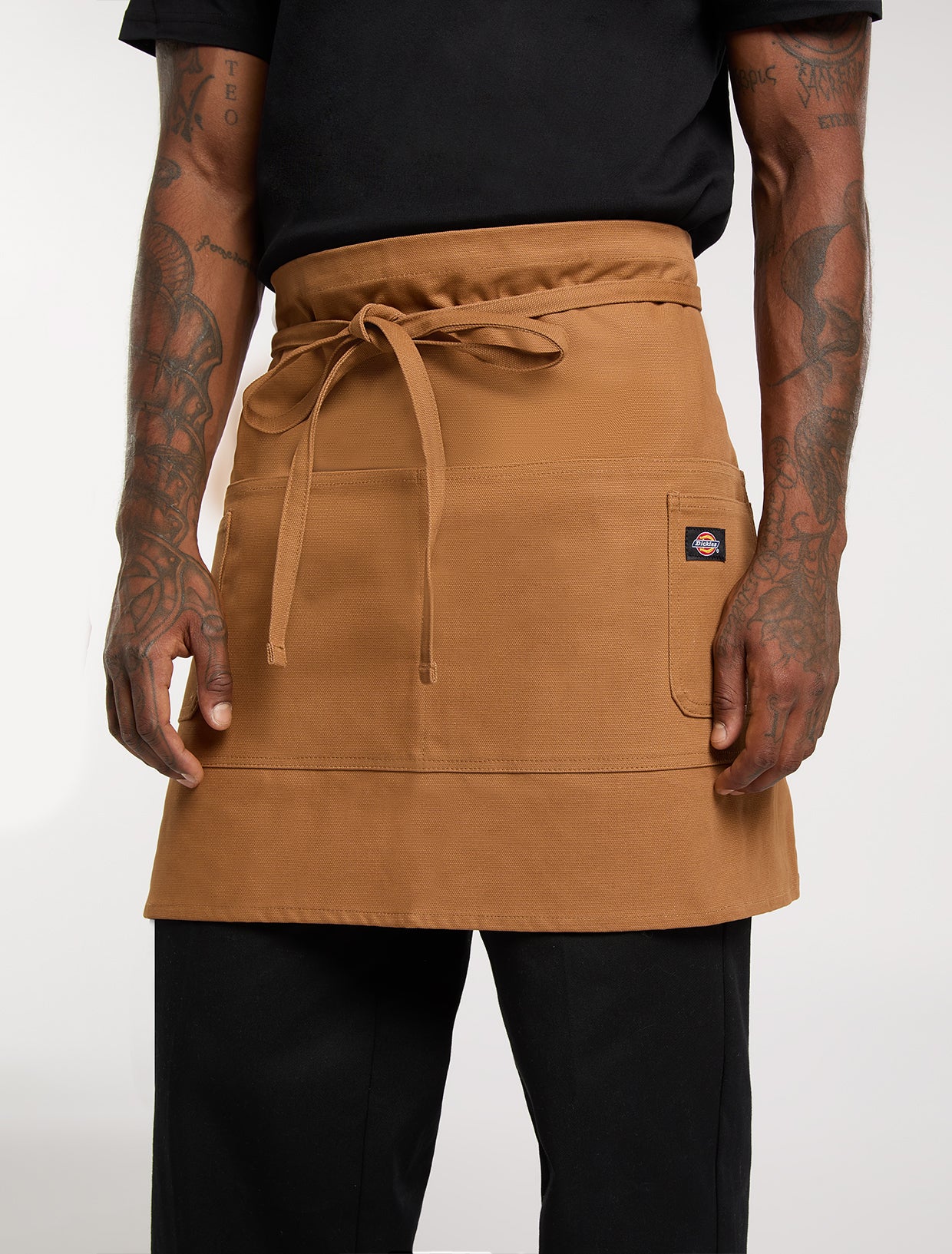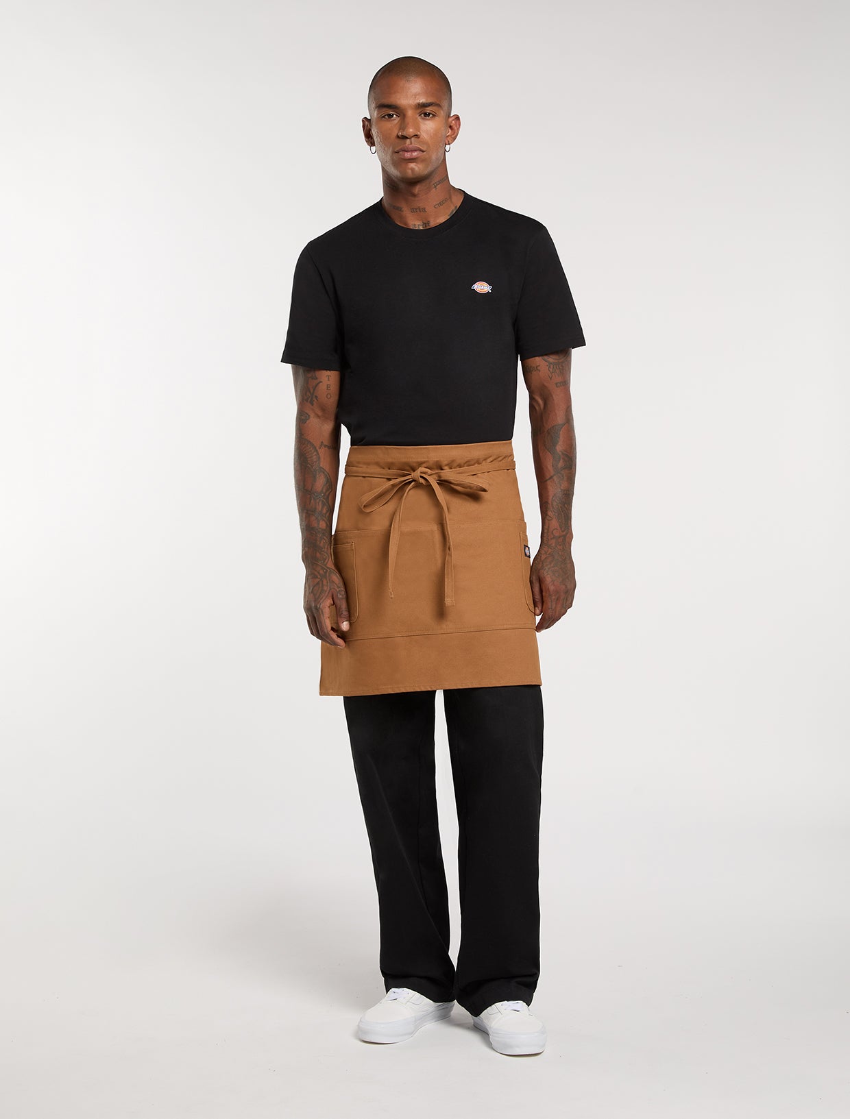 The Bistro apron is our classic service apron. Part of our Dickies Icon range, this functional piece features a large front pocket, two handy applique side pockets, and a tie back fastening at the waist. Built to last, this apron is crafted from heavyweight cotton canvas for extra durability.