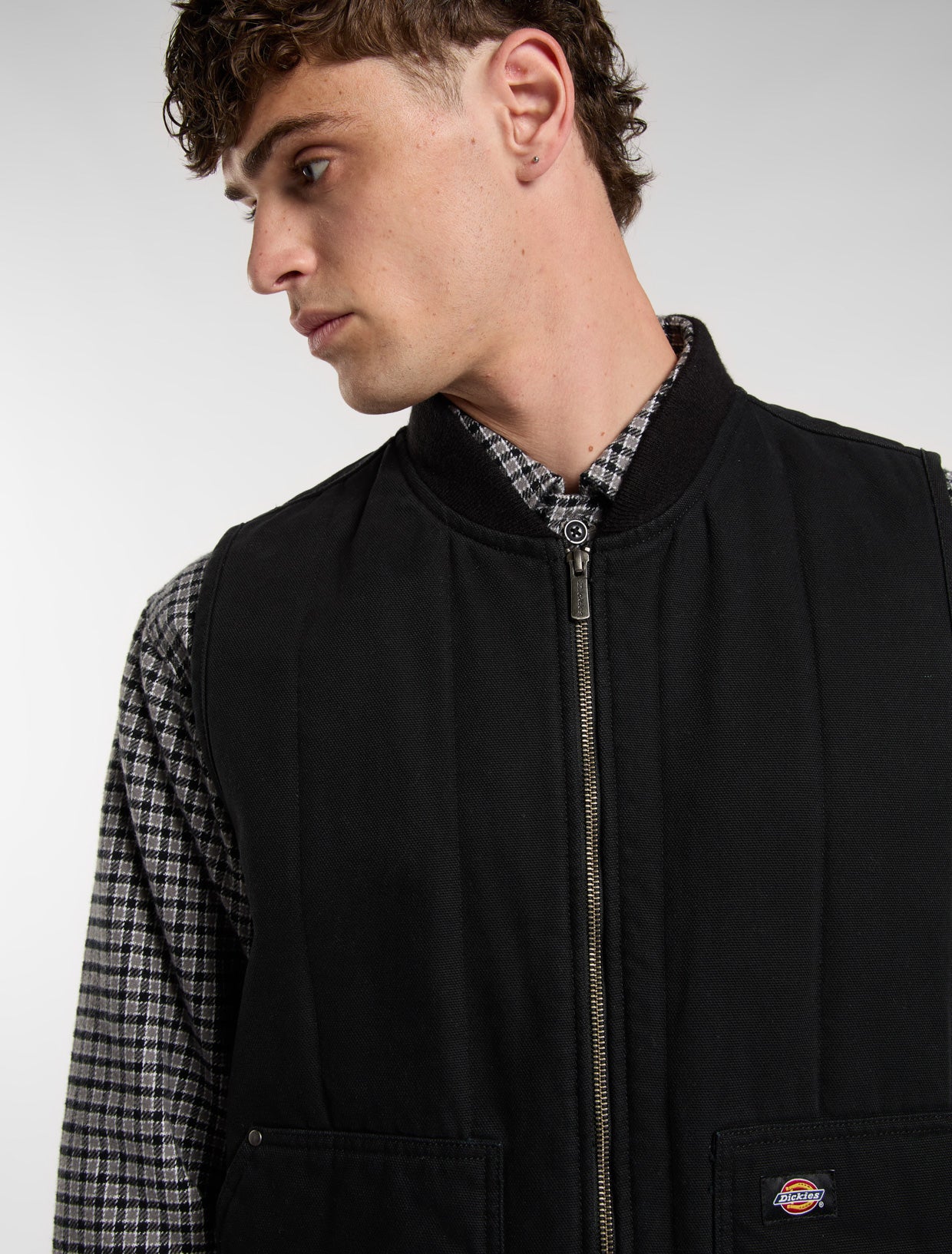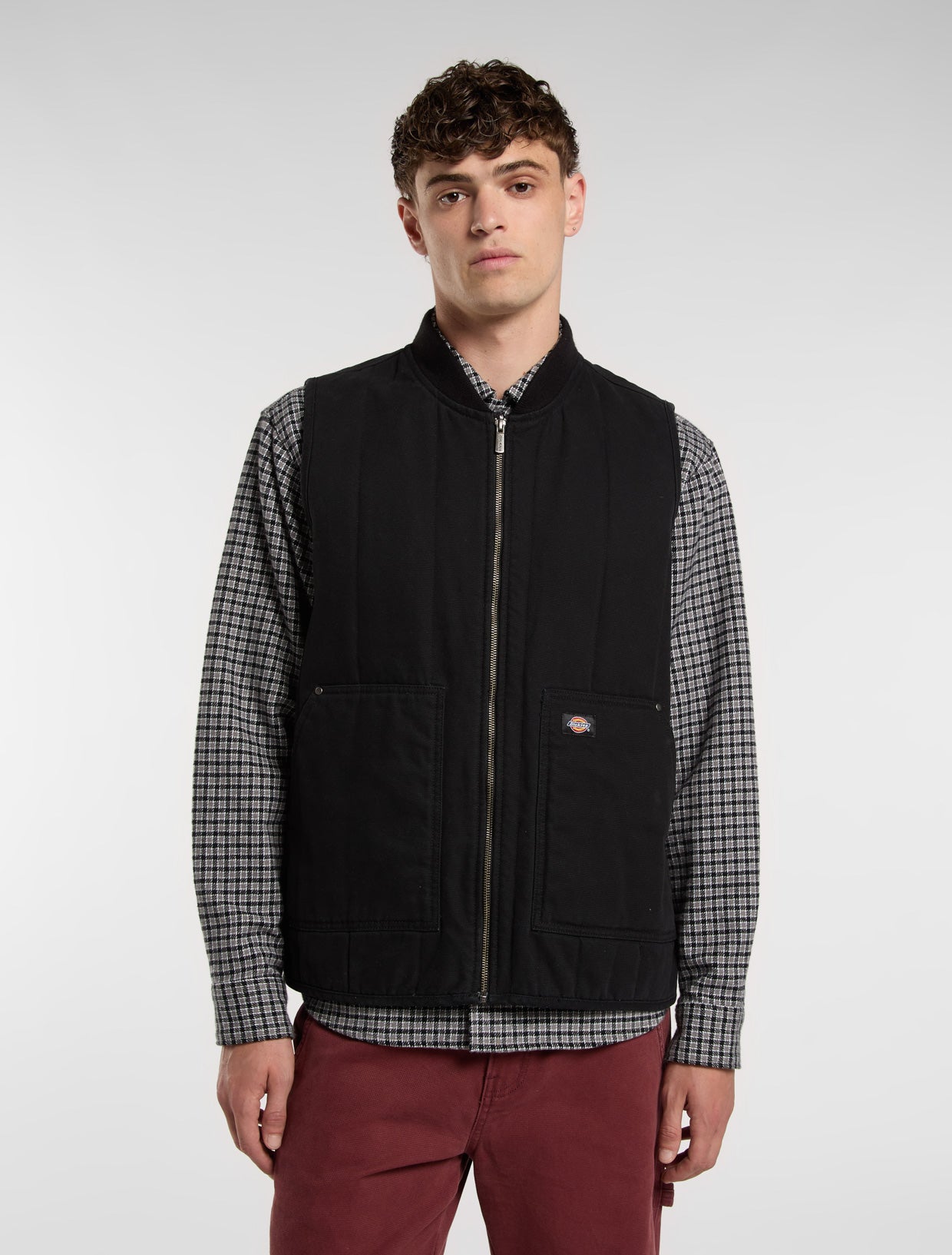 This quilted canvas gilet is a warm and rugged vest jacket that's ready for work or adventure. Made from slightly lighter comfort-washed cotton canvas with a quilted taffeta lining, this durable and stylish workwear gilet has low pockets with metal trims and rivets, a bomber collar, armhole binding, a full metal zip, and our signature woven Dickies label. Layer it up or down between the seasons.