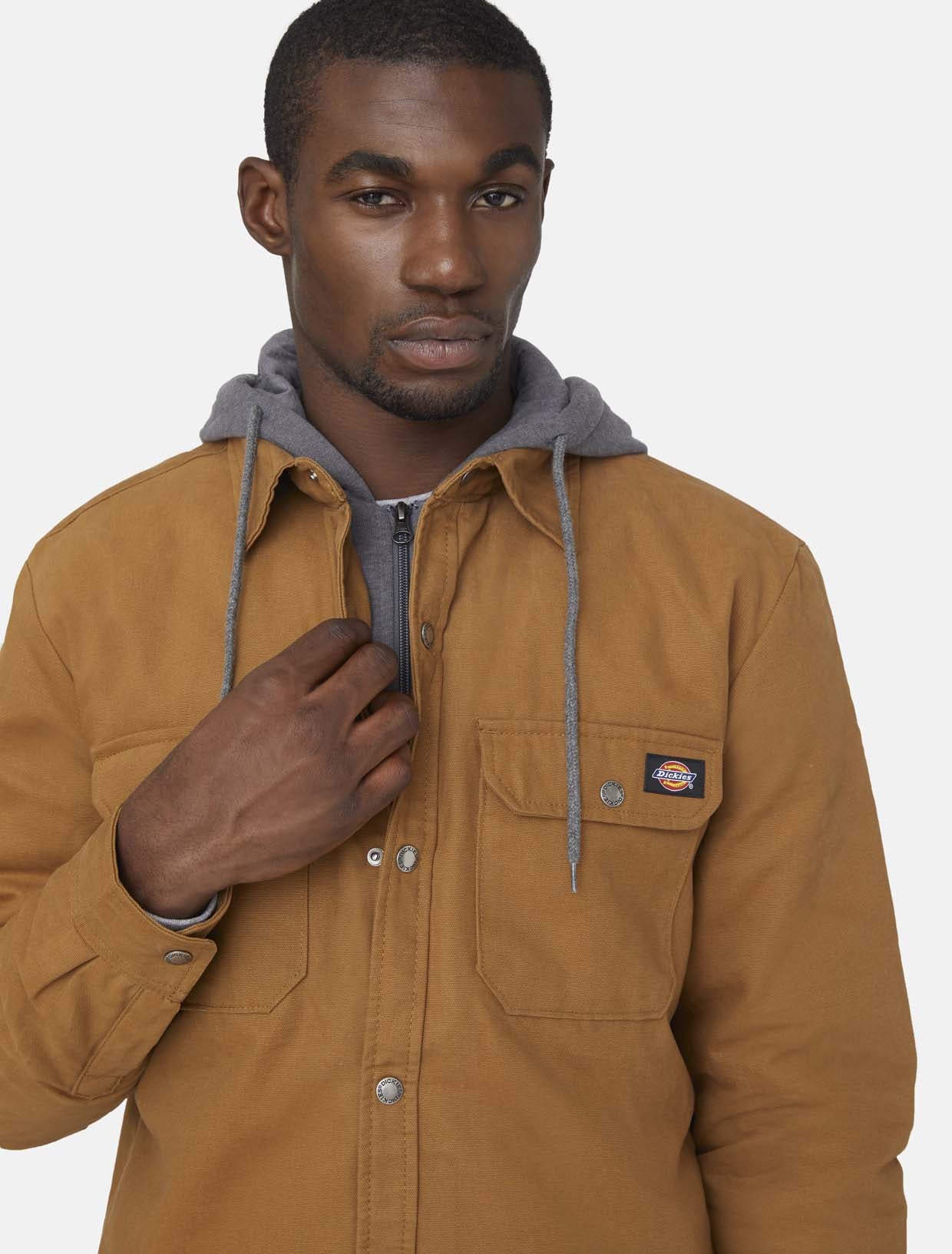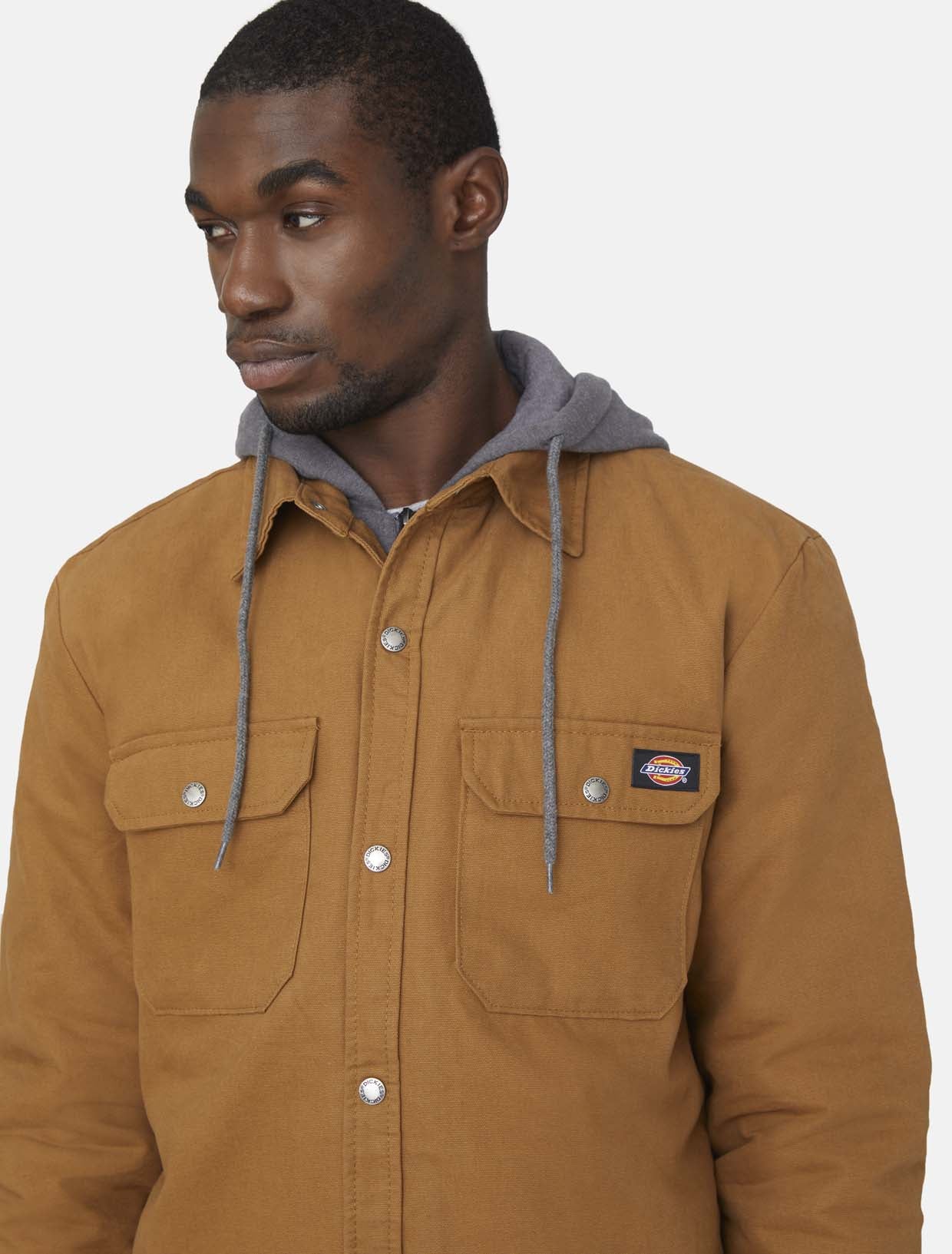 Finished with a durable water-repellent coating, the Duck Shirt Jacket protects against light showers to keep you dry when you're out on the job. The quilted lining, adjustable hood and fleecy pockets provide all-day comfort and warmth.