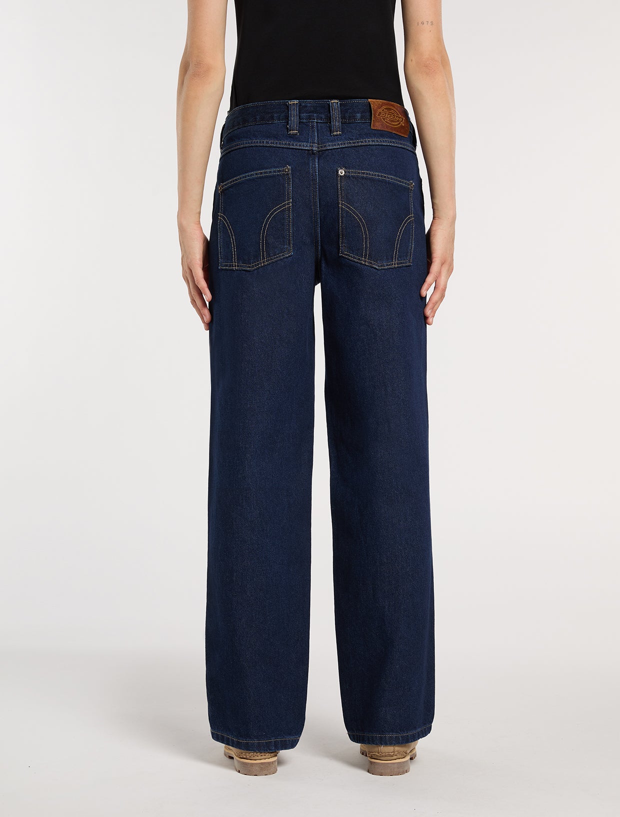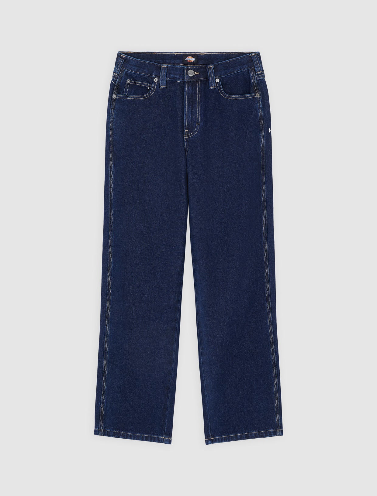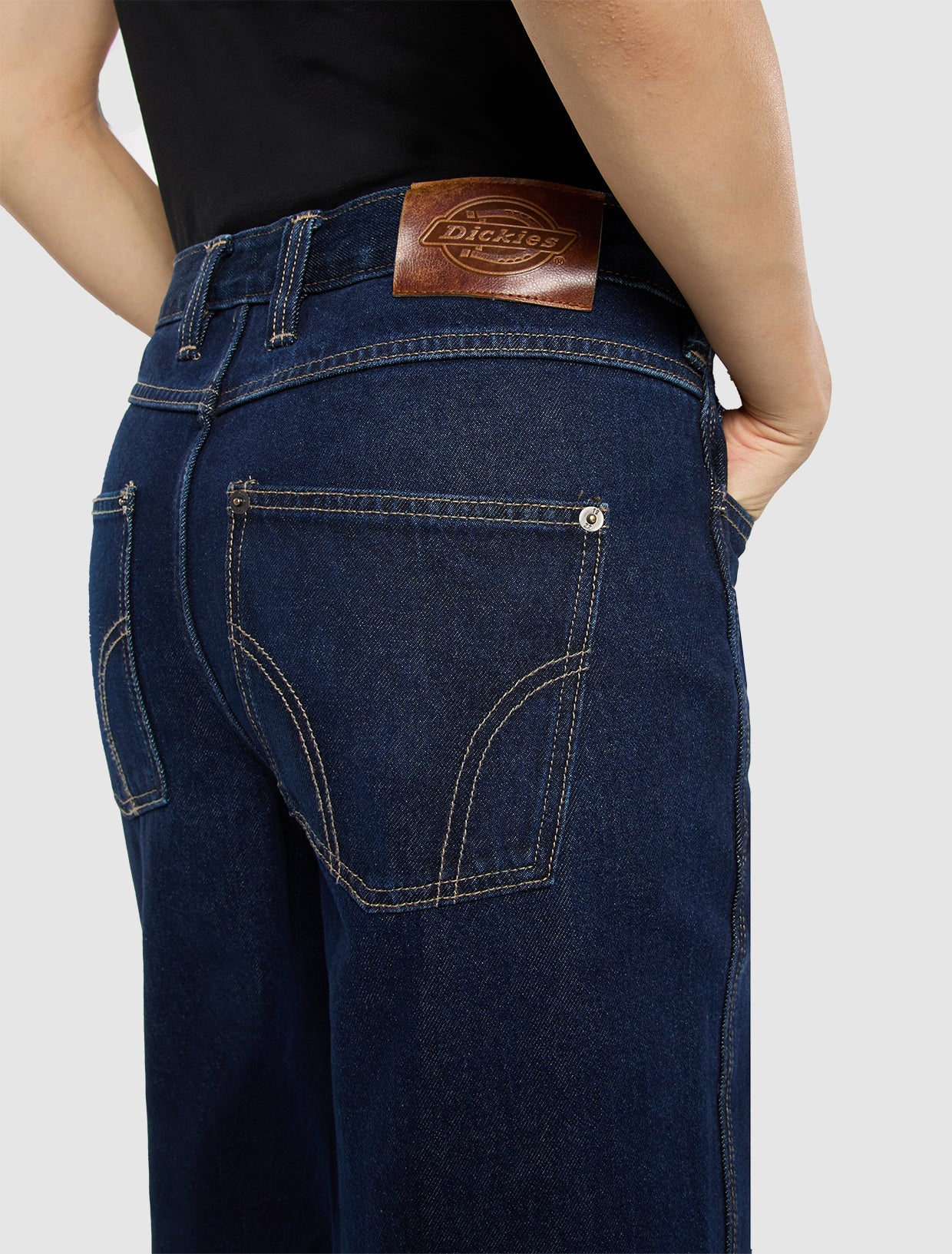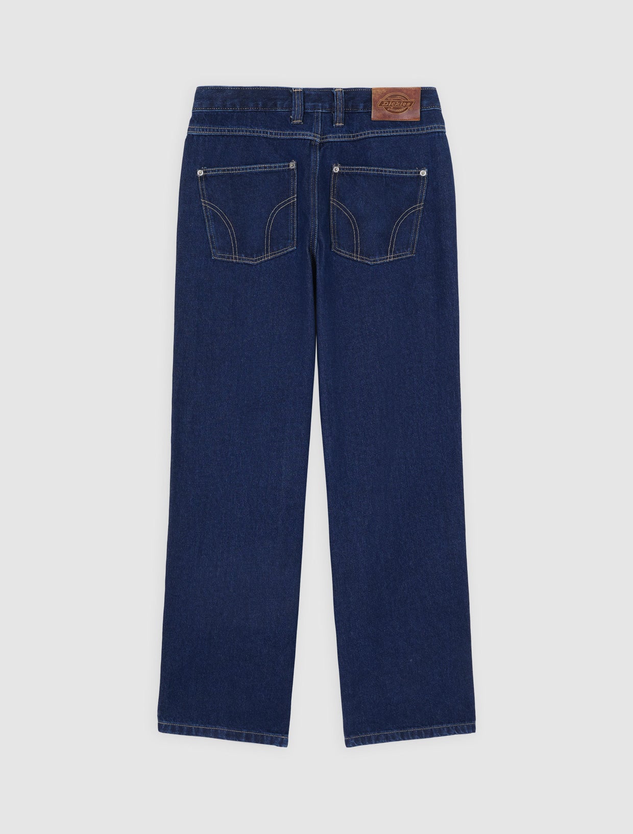Our heritage-inspired Farner relaxed straight jeans are built with the perfect blend of comfort and durability. Made from hardworking, heavy duty cotton denim twill with a mid waist, these cool and casual jeans have a zip fly with a shank button, a bold leatherette Dickies patch on the outer back waist, pocket rivets, and our signature woven label on the inner back waist.