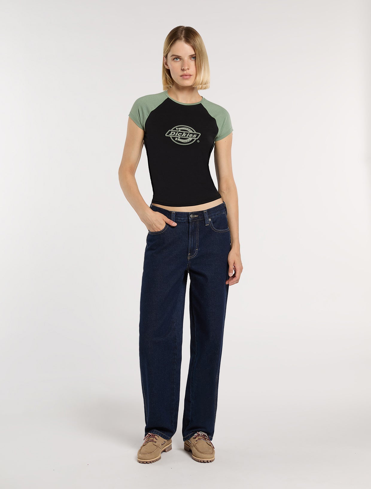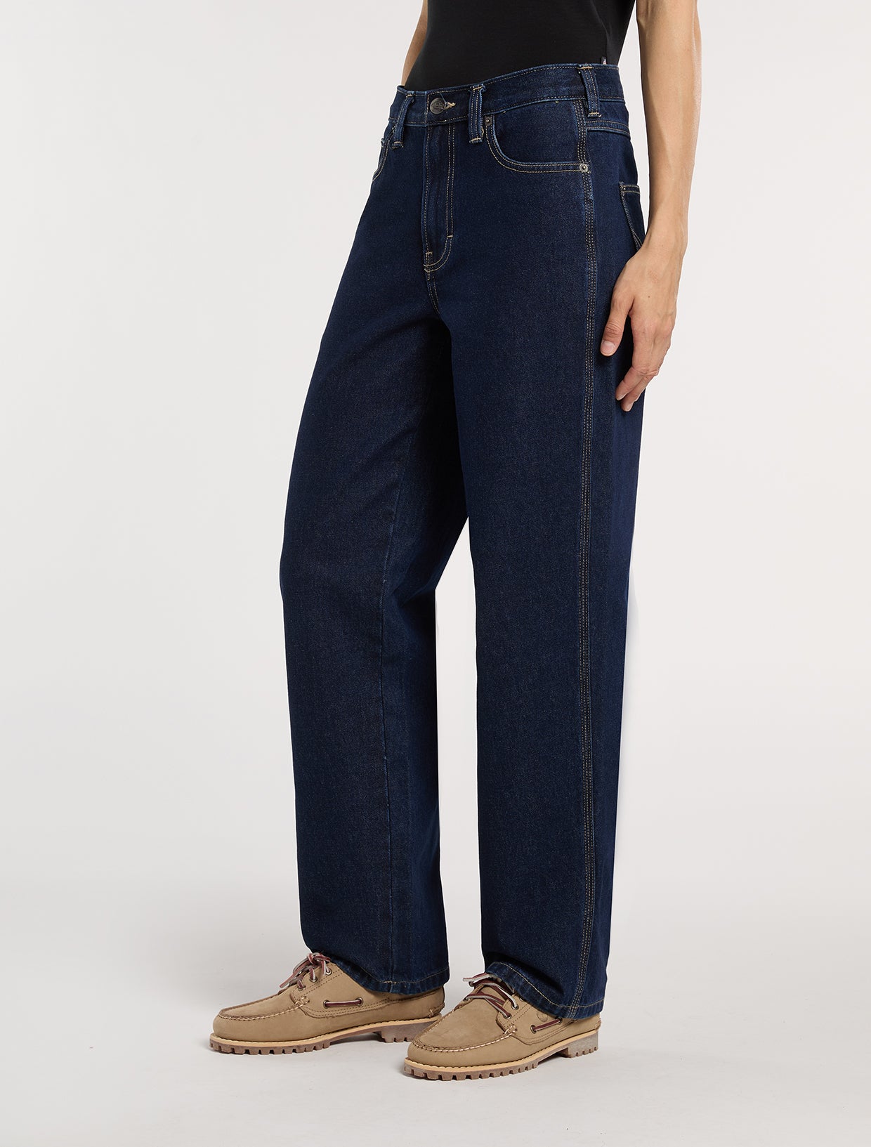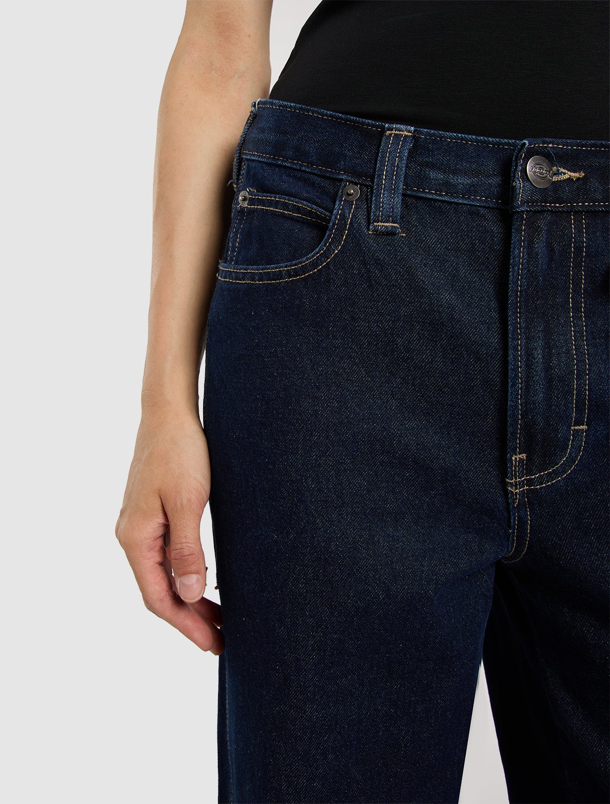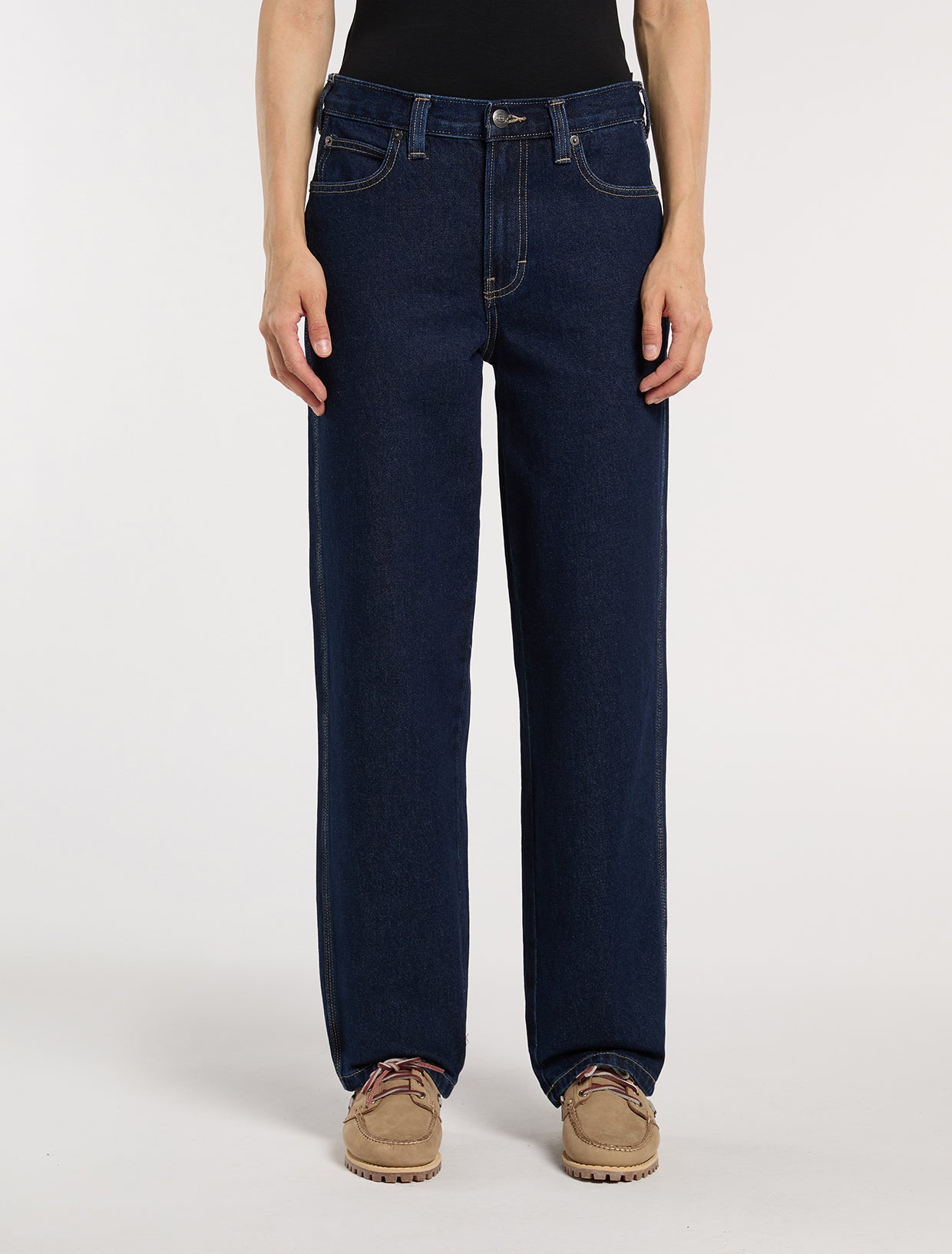 Our heritage-inspired Farner relaxed straight jeans are built with the perfect blend of comfort and durability. Made from hardworking, heavy duty cotton denim twill with a mid waist, these cool and casual jeans have a zip fly with a shank button, a bold leatherette Dickies patch on the outer back waist, pocket rivets, and our signature woven label on the inner back waist.