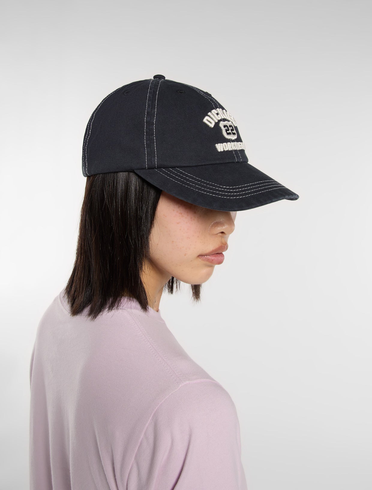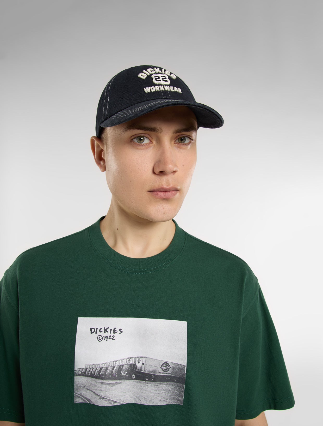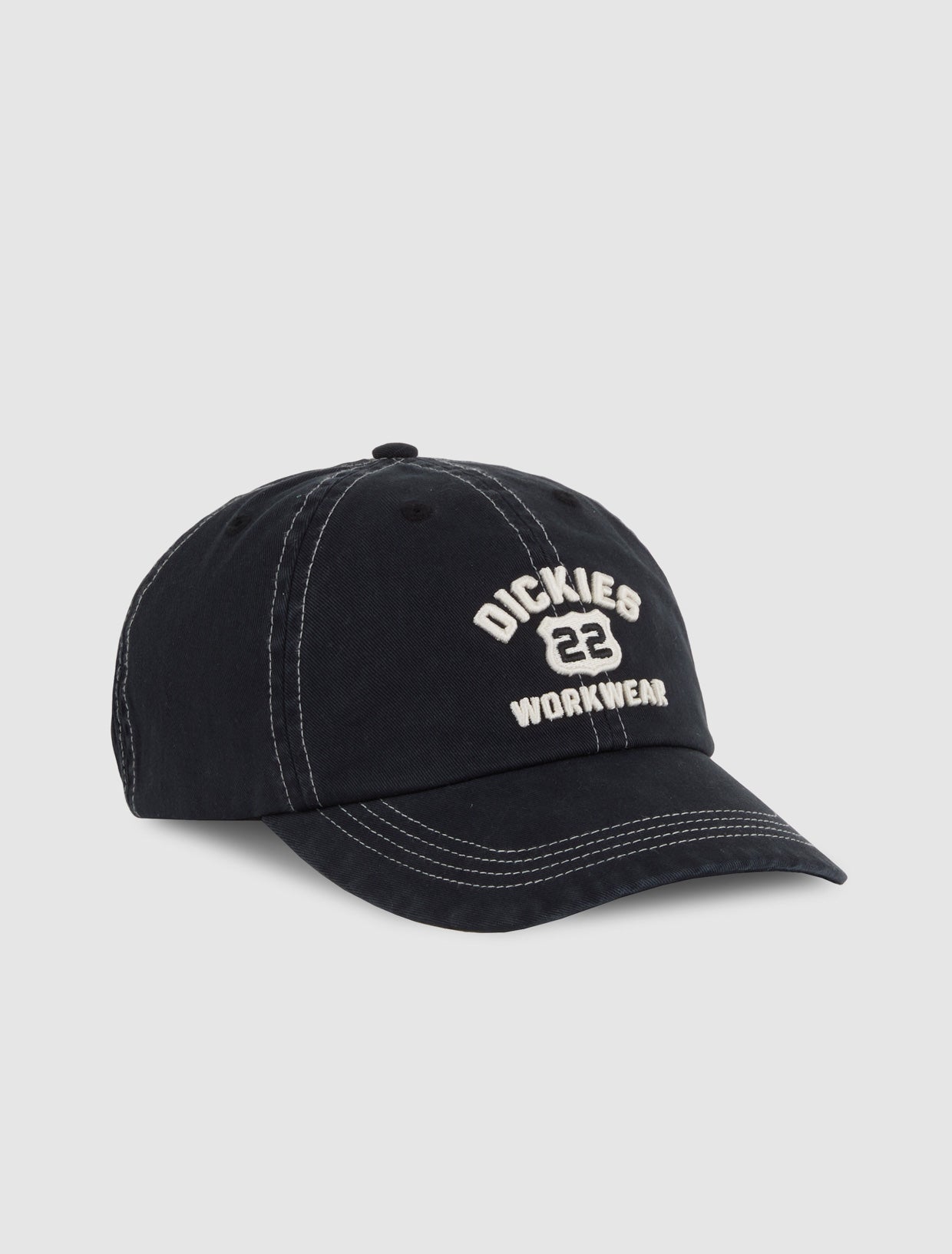 The Grimsley hat is a dad cap with authentic Dickies detailing and fabrication. It features contrast stitching, dyed-to-match embroidered eyelets, and raised embroidered route-inspired artwork that pays homage to classic workwear styles.