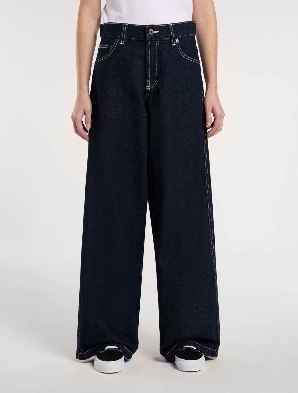 Inspired by the streetwear culture of the 90s, the Loose Wave Denim Jeans are a baggy denim jean with an authentic, nostalgic fit that comes straight from the Dickies archives. Crafted from durable 13oz cotton denim, these jeans offer the perfect slouchy silhouette, blending comfort and style. Key features include the iconic Dickies patch on the back waistband, a raised back pocket with signature Dickies script embroidery and contrast stitching. With a modern twist on classic design, these jeans built to last and are a true homage to the decade’s laidback style.