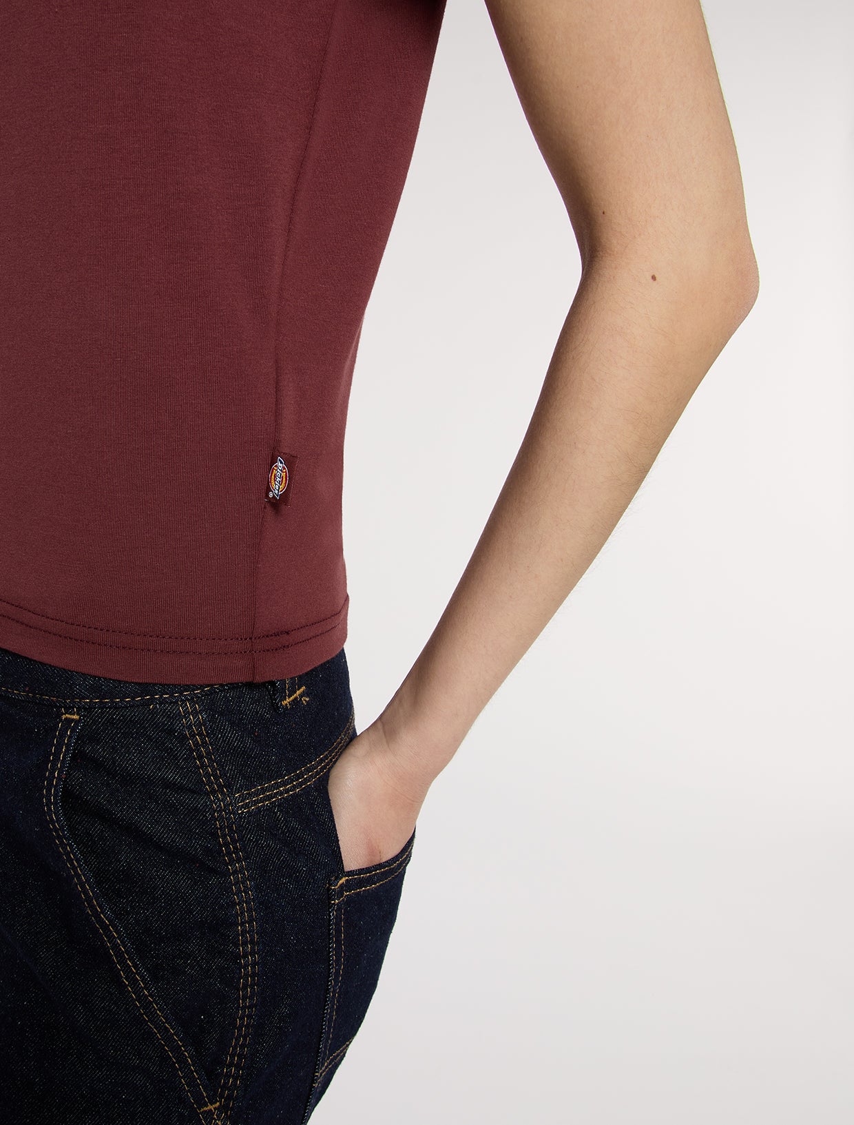 A tried-and-tested Dickies classic, the Maple Valley light weight t-shirt is a regular-fit and short-sleeve t-shirt with our iconic Dickies logo on the centre front. Made from light and breathable stretch cotton for comfort, this feminine t-shirt is a warm-weather staple made for everyday wear.