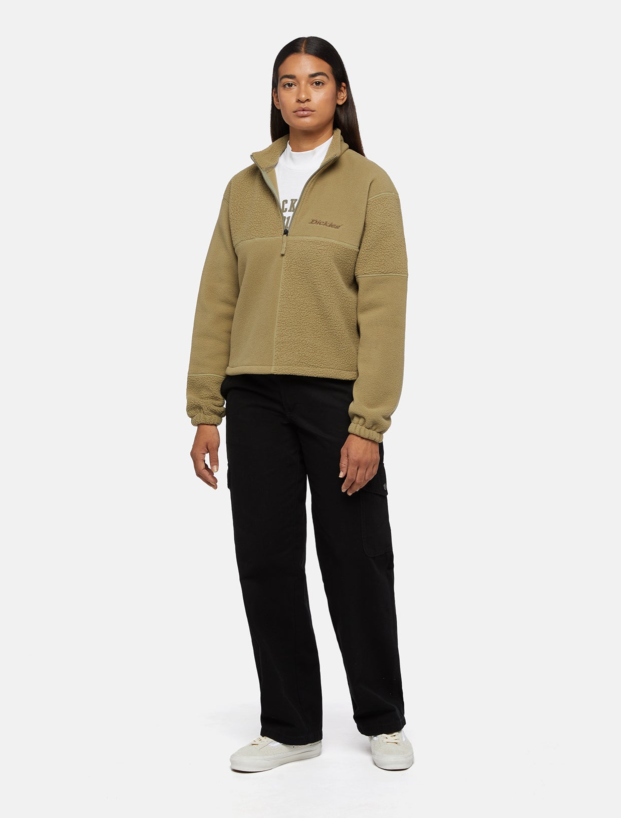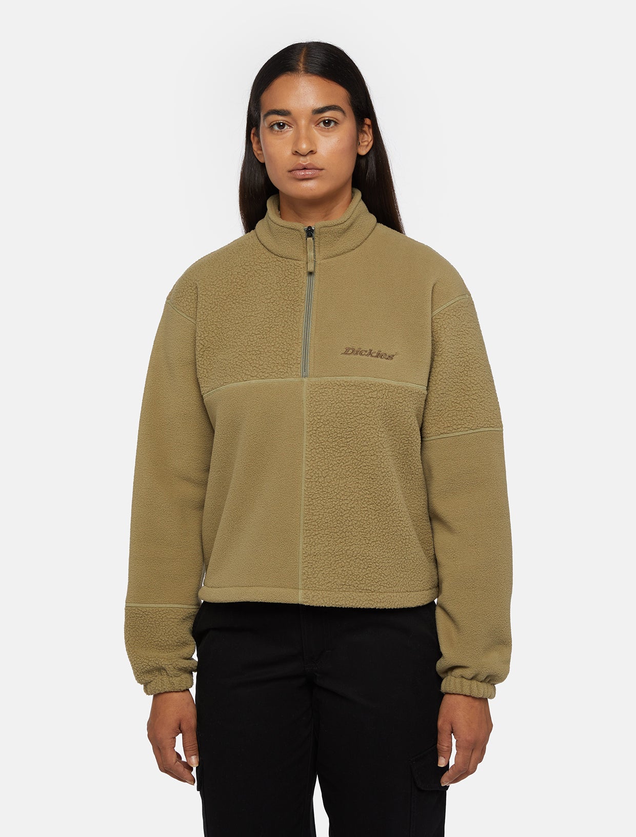 The Pinesdale 1/4 Zip Fleece is ready for you whenever you need a warm and comfortable layer. This midweight fleece sweatshirt is super-soft with a relaxed fit, boxy silhouette and high neck design. Stretch cuffs lock out the cold, and an embroidered Dickies logo adds our signature style.
