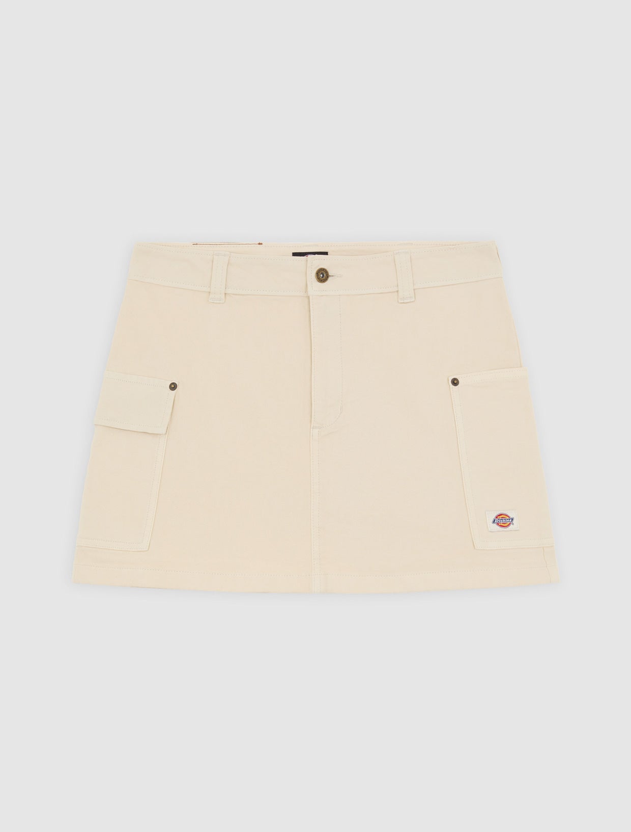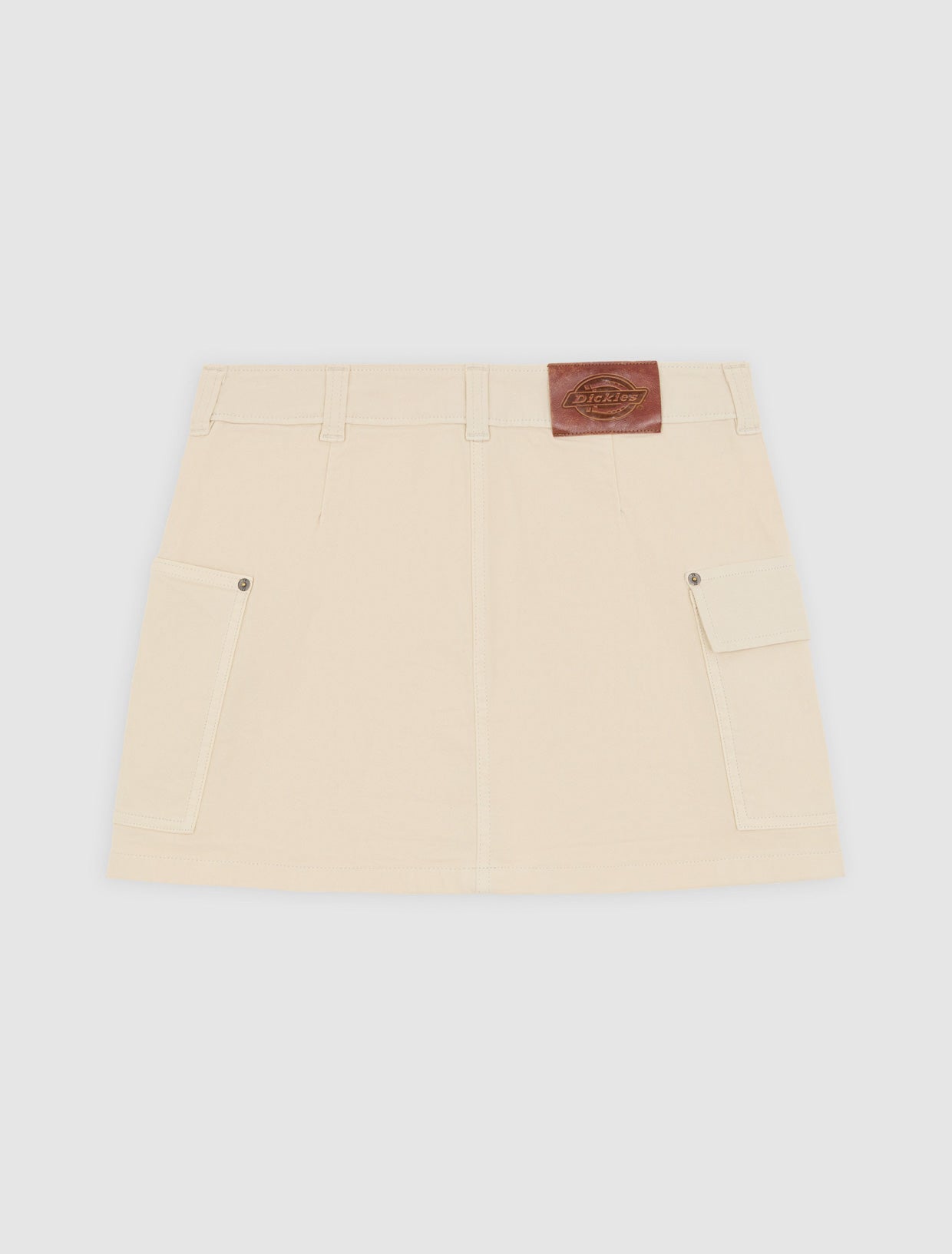 Made from 9.8oz brushed duck cotton canvas with added stretch for comfort, the River Ranch Mini Skirt is a workwear heritage-inspired mini work skirt for work or play. It features a Dickies archive leatherette patch, antique brass rivets, a shank button and zip and tool pockets.