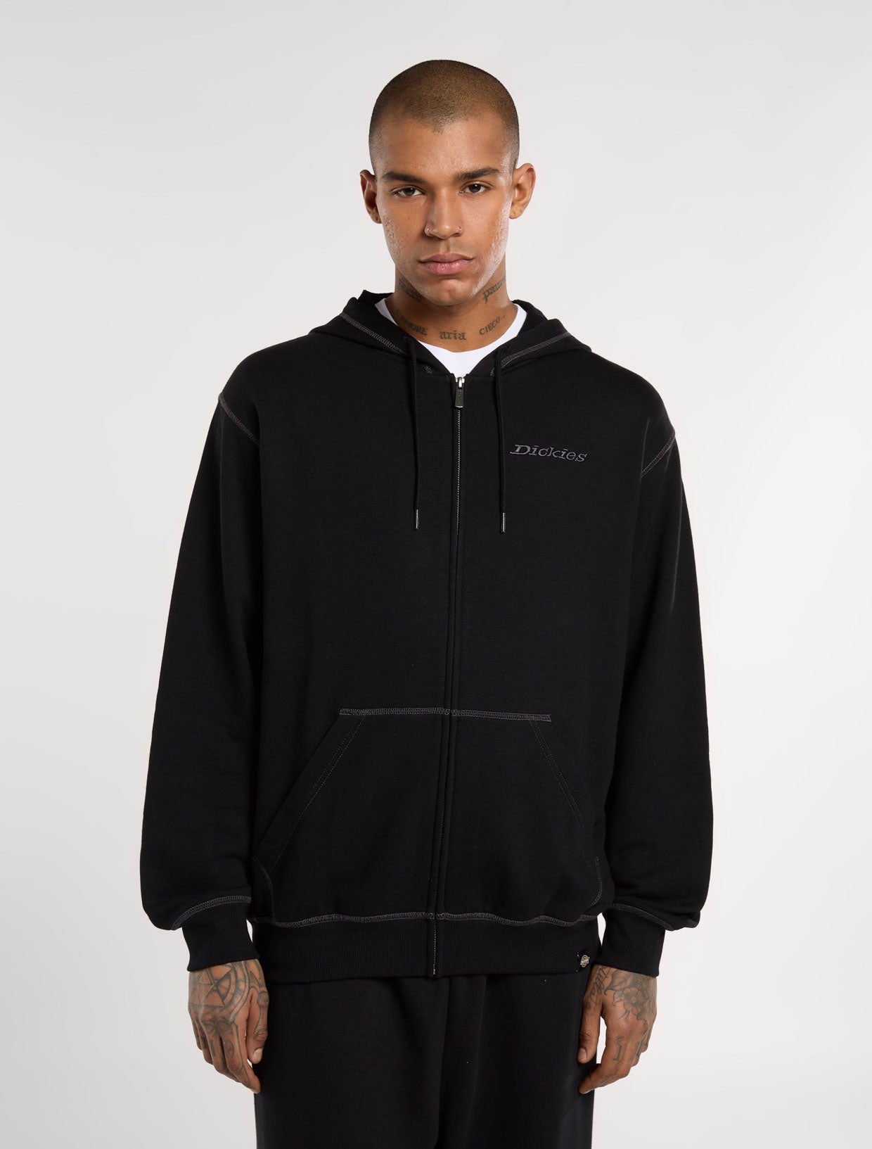 Finished with side pockets, an adjustable hood and embroidered Dickies logo on the chest, the Roy Full-Zip Hoodie is a warm and comfortable everyday staple complete with a Dickies woven label on the hem.