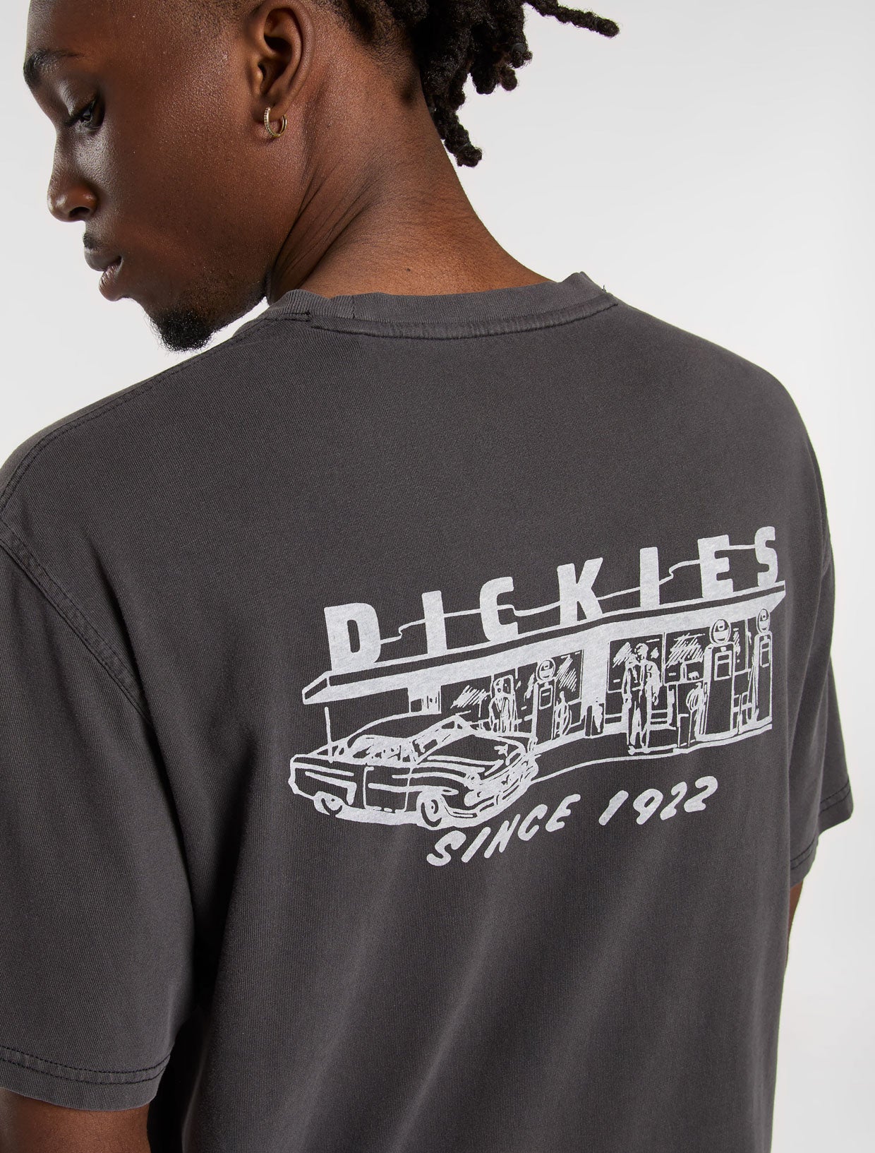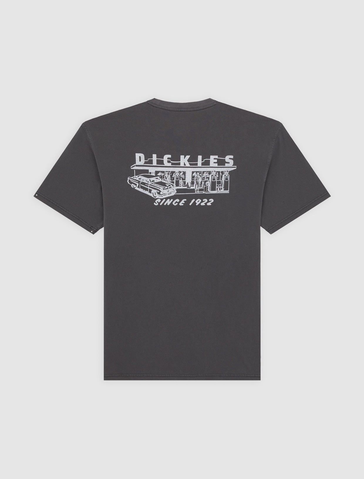 Influenced by mechanics and gas station workers, the vintage-style Service Station T-Shirt is a relaxed-fit t-shirt with heritage-inspired artwork on the back. This everyday essential short-sleeve t-shirt is made from 100% cotton and features a small single-colour Dickies Icon logo on the left chest.