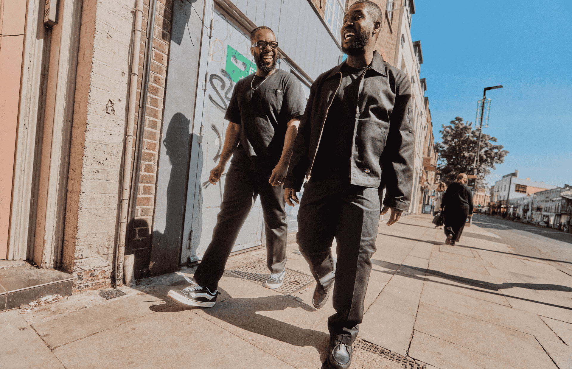 Camden, café, cajas de vinilos... Cocinar en casa y luego a ensayar con la banda. Femi y TJ en plena acción. Ezra Collective en modo 24/7.