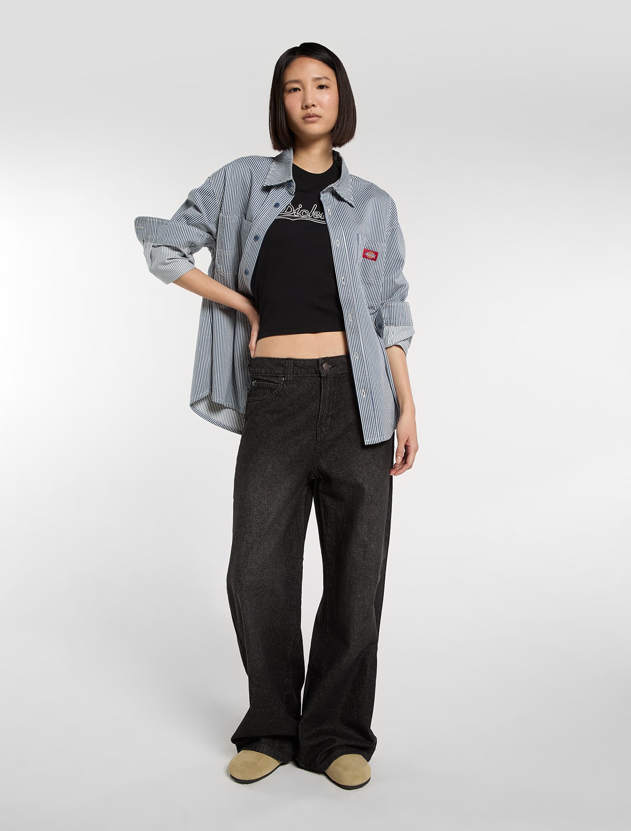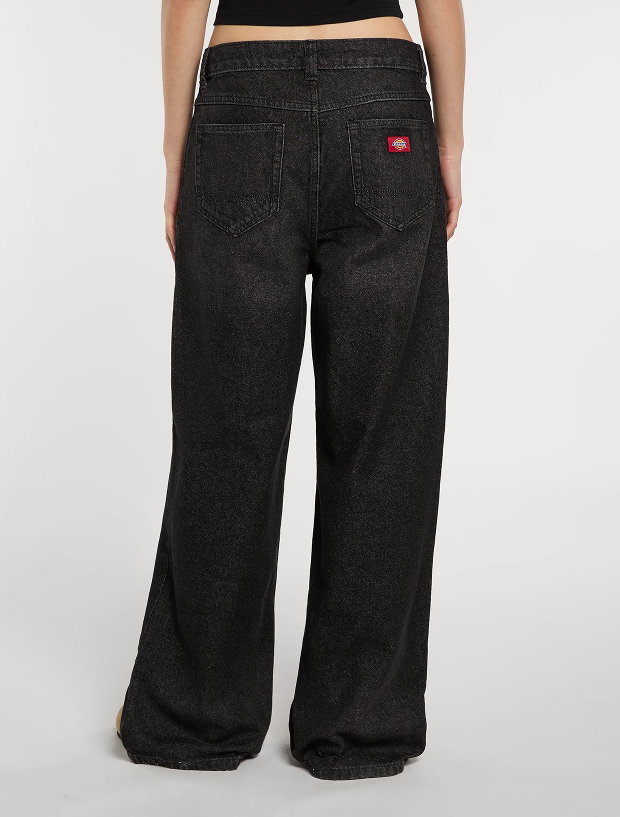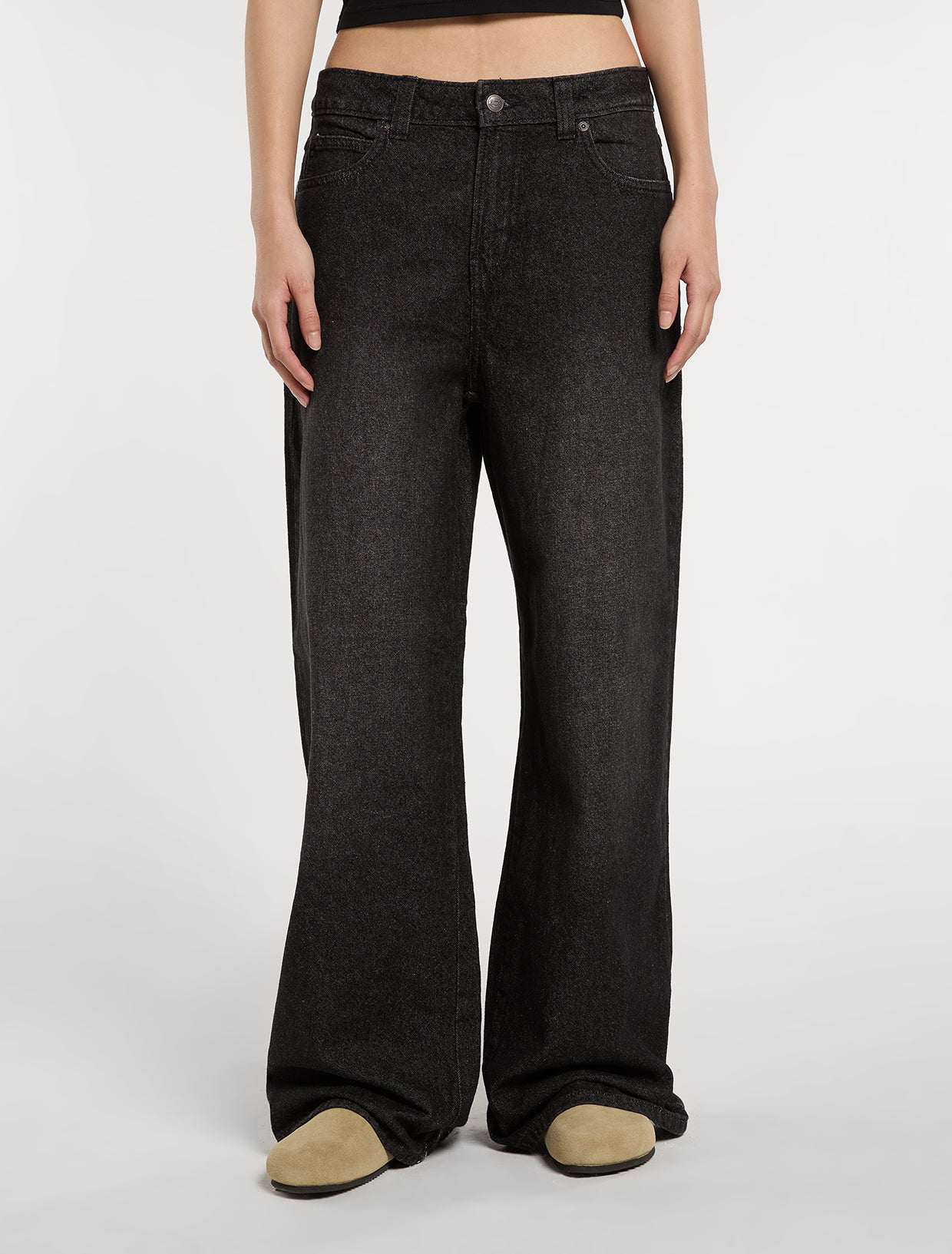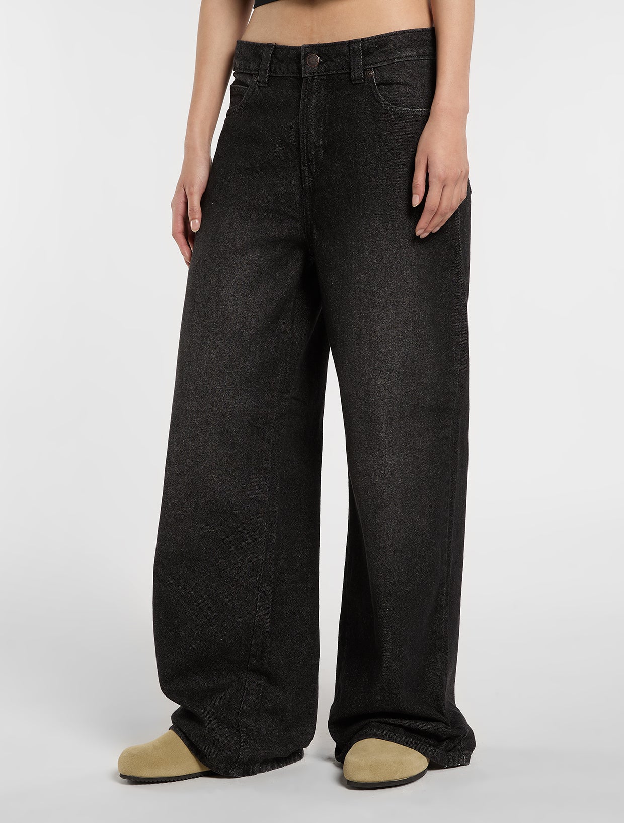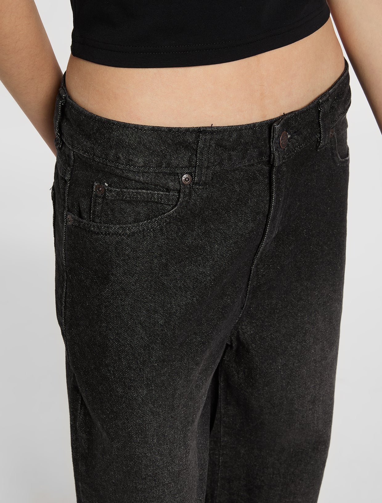 Avec une jambe large ainsi que des poches avant et arrière, ce jean en denim résistant offre une coupe baggy avec une taille mi-haute, ce qui le rend parfait pour des journées décontractées.