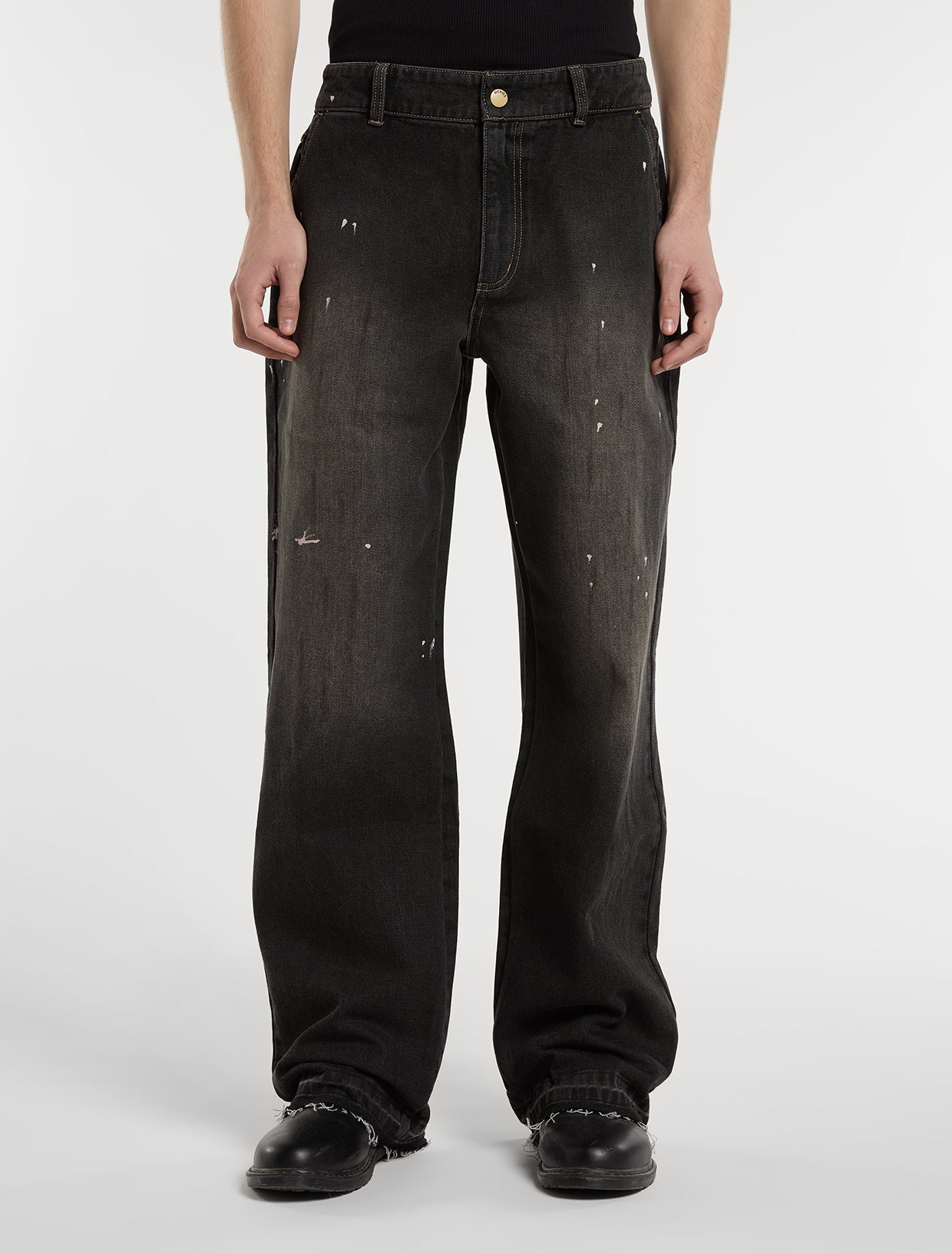 Le jean de travail ample teint à la boue offre une coupe décontractée qui allie confort décontracté et fonctionnalité. Le tissu est fini avec un processus de teinture unique qui donne à ce jean un aspect usé.