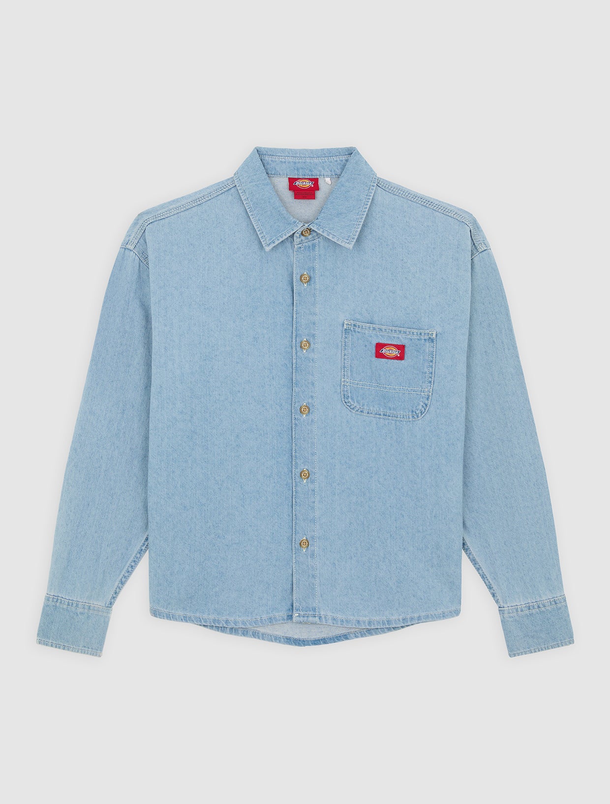 Questa camicia in denim è una camicia a maniche lunghe con bottoni, dal taglio rilassato e squadrato. Leggera e traspirante, offre comfort e stile per le stagioni più calde.