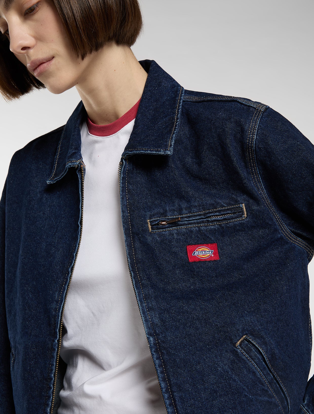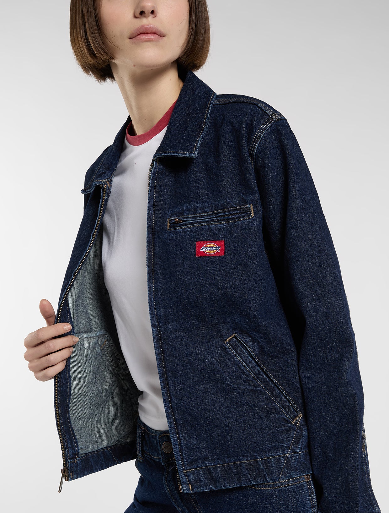 Realizzata in 100% cotone con una sensazione morbida e leggera, la giacca painter in denim unisce comfort a un'estetica workwear. Questa giacca affidabile è rifinita con maniche lunghe, orlo dritto e un classico colletto a punta per un look quotidiano rilassato e casual.