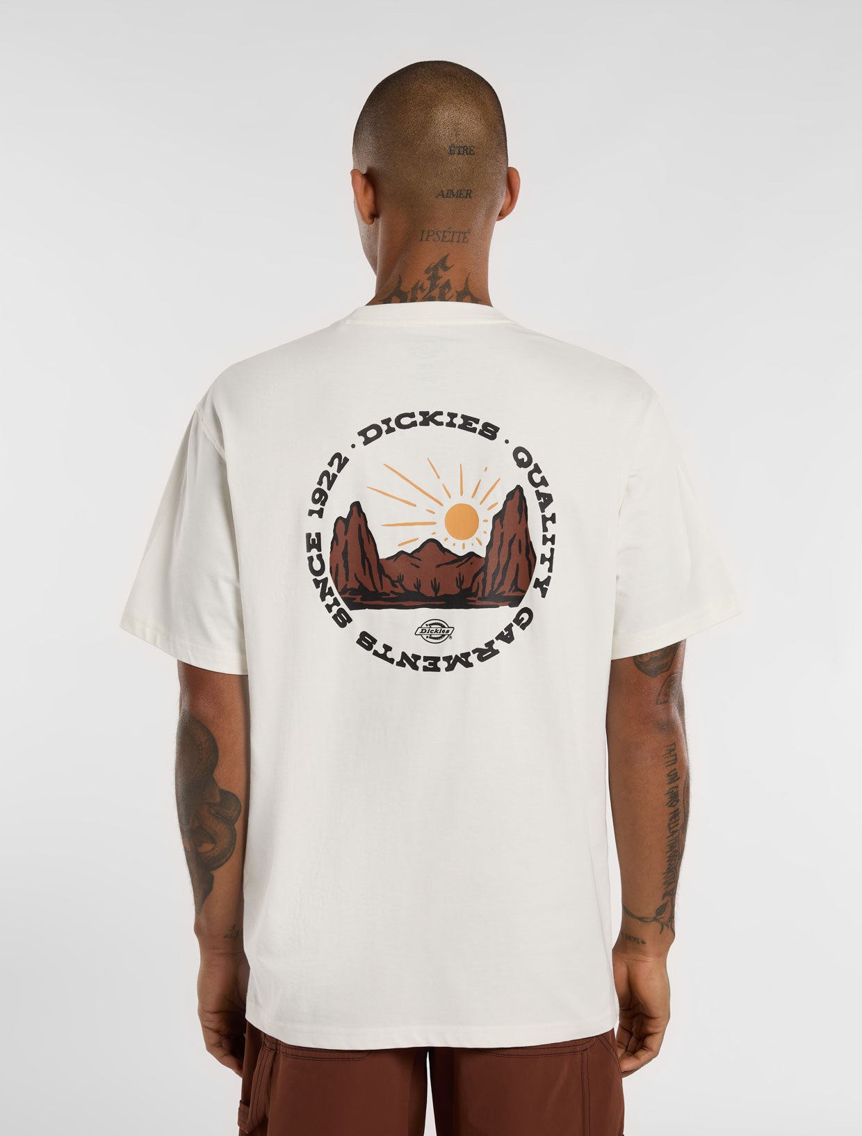 Ispirata alla nostra tradizione workwear di alta qualità, la T-shirt a maniche corte Outdoor è un capo essenziale dalla vestibilità comoda, realizzato in jersey 100% cotone. Perfetta da indossare ogni giorno, vanta un logo Dickies arcuato in stile Western sulla parte anteriore e una grafica vintage circolare di una catena montuosa sul retro.