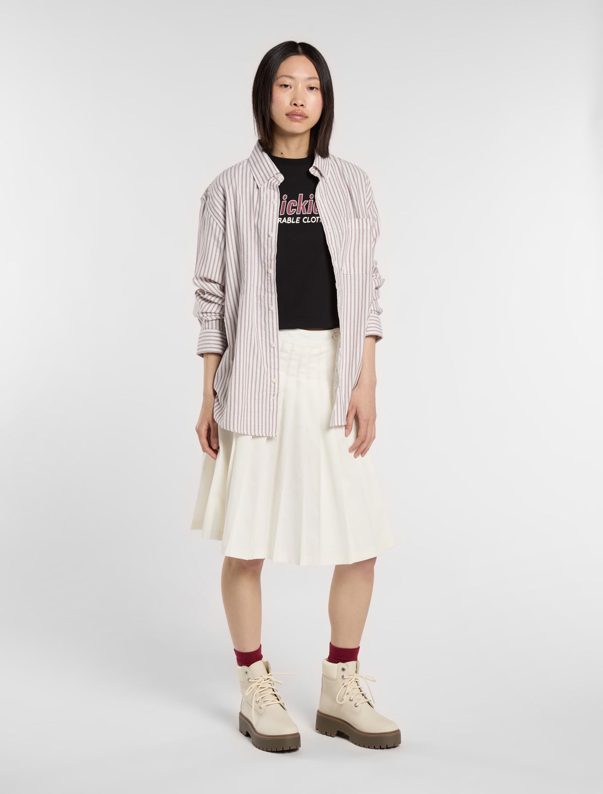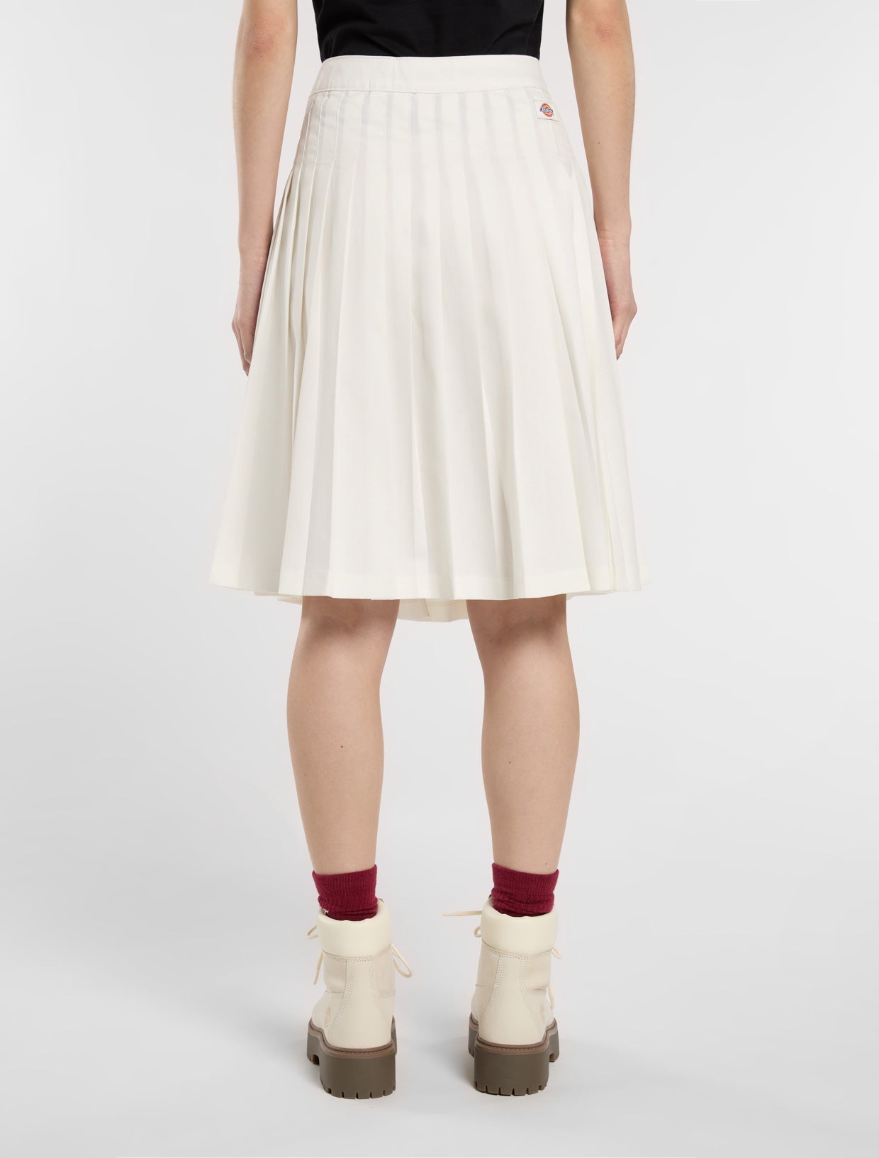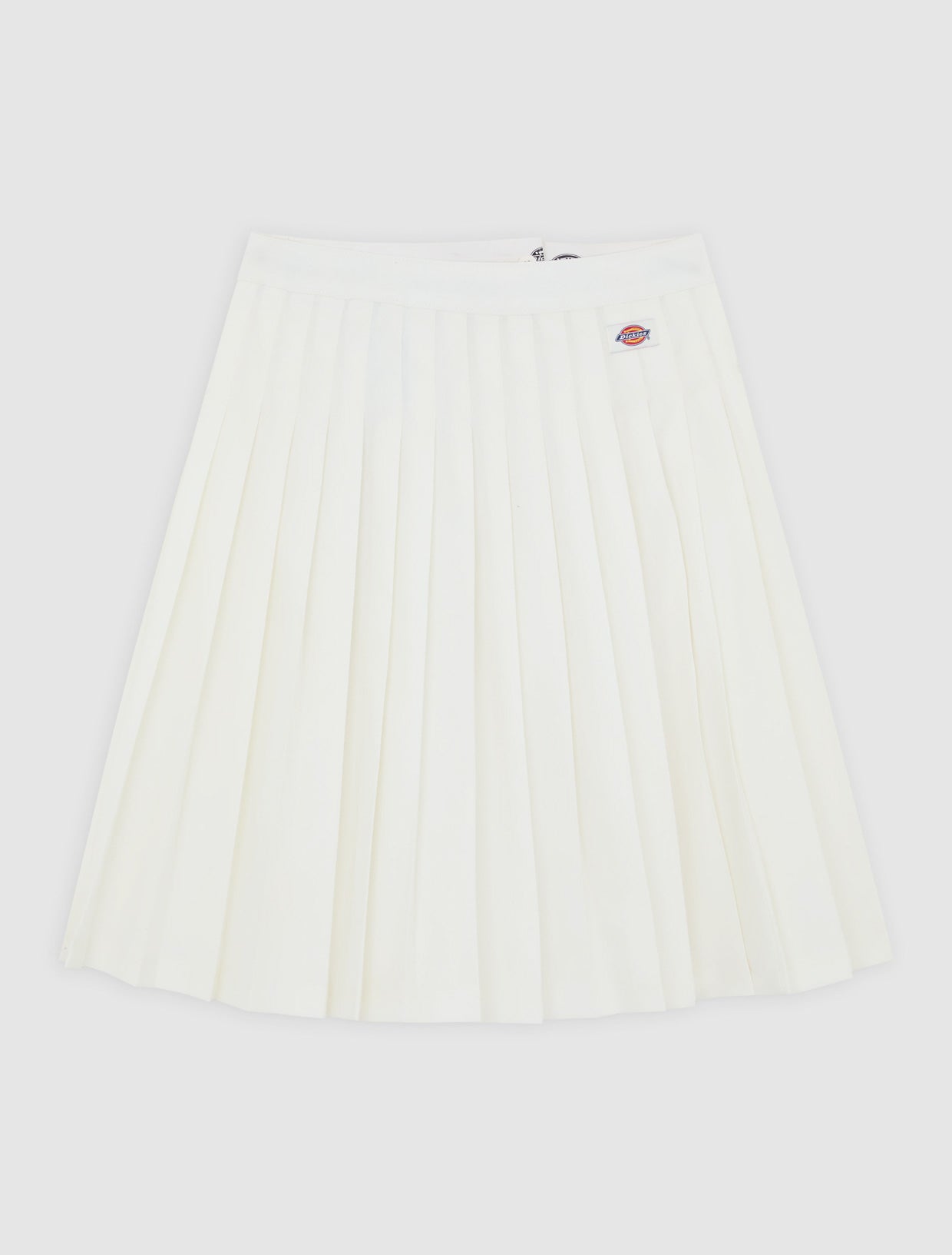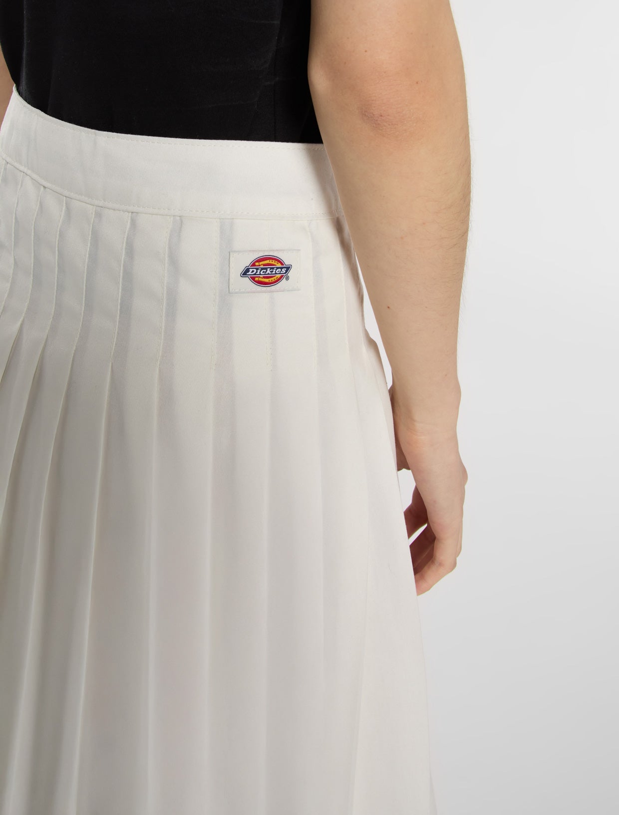 De Dellrose is een stijlvolle en klassieke iets langere rok voor relaxte dagen en casual weekendjes weg. Hij heeft een getailleerde tailleband, een strakke zoom, doorstikte verticale plooien en ons iconisch geweven Dickies-label op de achterkant. Een echte must-have voor talloze gelegenheden.