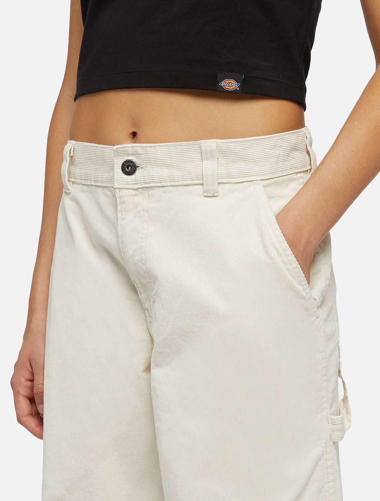 I manchesterbyxorna carpenter med vida ben, ledig passform och låg midja blandas arbetskläder med urbana streetwearvibbar, och de har snickarbyxans alla klassiska detaljer, som två verktygsfickor, hammarögla och sex bälteshällor. Manchestertyget ger de här byxorna en tidlös look, och det elastiska tyget ger bra rörelsefrihet hela dagen.