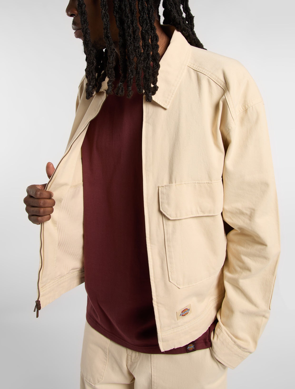 Den ofodrade jackan Fort Smith trucker i mjuk bomull har nedre fickor strategiskt placerade för långa dagar på vägarna i äkta chaffisstil. Axelsömmar löper längre ned mot bröstet, och den har insydda lappar på armbågarna och Dickies ikoniska vävda etikett ovanför nederkanten. En tidlös truckerjacka anpassad efter truckerlivets behov, kompletterat med Dickies klassiska detaljer och design.