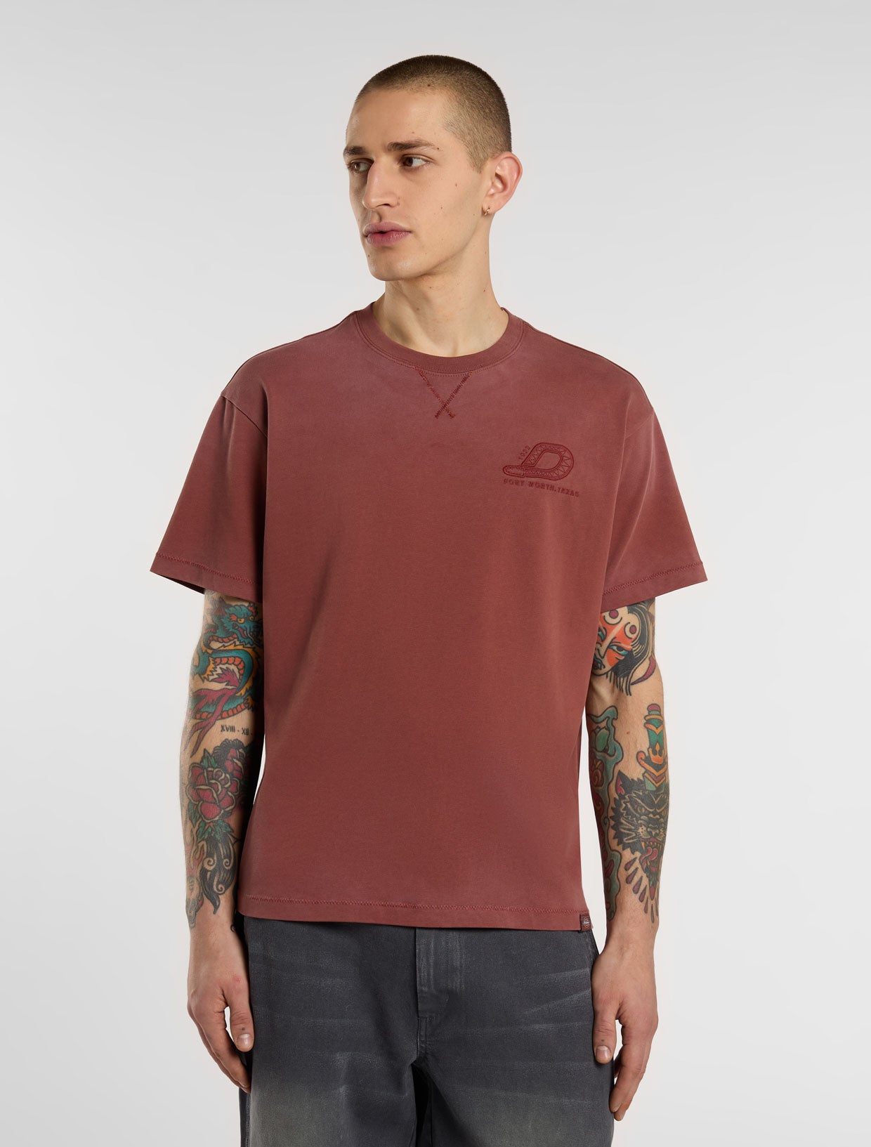 Med den här lediga kortärmade t-shirten firar vi ormens år med ett skallerormsinspirerat D på bröstet. Den här tröjan är sydd i mjuk och skön bomullsjersey med rund, ribbstickad halslinning och Dickies ikoniska, vävda etikett på nederfållen.