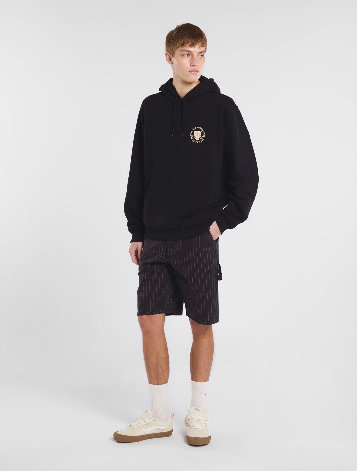 Den lediga och sköna huvtröjan Wrench för kyliga dagar och kvällar är sydd i slitstark polyester- och bomullsfleece med borstad insida. Den här oömma tröjan har även huva med dragsko, en påsydd ficka på magen, och till vänster på bröstet och på ryggen finns ett runt verkstadsinspirerat tryck i vintagestil som inspirerats av våra rötter inom arbetskläder.