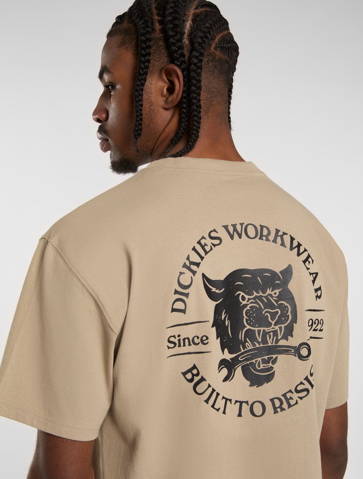 Den lediga och sköna, kortärmade t-shirten Wrench har runt verkstadsinspirerat tryck till vänster på bröstet och ett större tryck på ryggen. Den mjuka och sköna bomullsjerseyn och den lediga passformen gör den till ett oumbärligt basplagg för alla tillfällen.